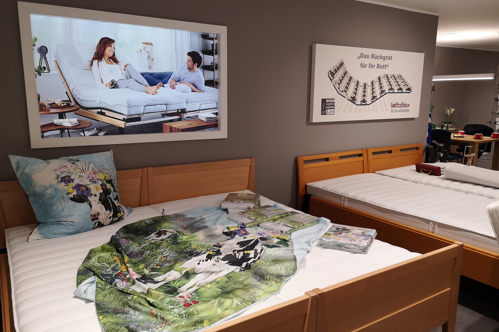 Die Kundinnen erhalten auf Wunsch Beratung im Bereich Damen-Wäsche und bei der Liegeberatung sind dann auch die Herren mit angesprochen. „Matratzen und Lattenroste kann man individuell anpassen. Auch bei den Bettgestellen bietet das Fachgeschäft eine große Auswahl in allen Größen und in verschiedenen Höhen und Breiten.